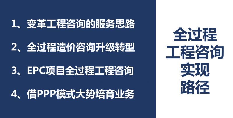 第二個(gè)路徑是,全過程造價(jià)咨詢升級轉(zhuǎn)型。對我們來講,我們的核心競爭力就是投資管控。所以,我借助克林頓的那句“笨蛋,問題是經(jīng)濟(jì)”,改造成“哥們,問題是投資”。河南省昨天發(fā)的文(《河南省住房和城鄉(xiāng)建設(shè)廳關(guān)于申報(bào)建設(shè)項(xiàng)目全過程造價(jià)咨詢試點(diǎn)企業(yè)的通知》),我一看就挑大拇哥,我說“河南真行啊”。因?yàn)樗孟窨雌饋硎桥嘤^程造價(jià)的試點(diǎn)企業(yè)和造價(jià)咨詢的能力,實(shí)際上是為培育全過程工程咨詢業(yè)務(wù)中的統(tǒng)籌能力,為工程造價(jià)咨詢企業(yè)全面上升到全過程工程咨詢而鋪陳的。這是一個(gè)非常好的契機(jī),河南省有這么好的主管單位,我們沒有理由落在全國的后面。